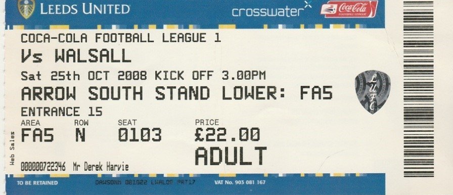 Match: Leeds United v Walsall Competition: Coca Cola League 1 Date: 25-Oct-2008 Comments: Rating: 4 Condition: Good Weight in grams: 20