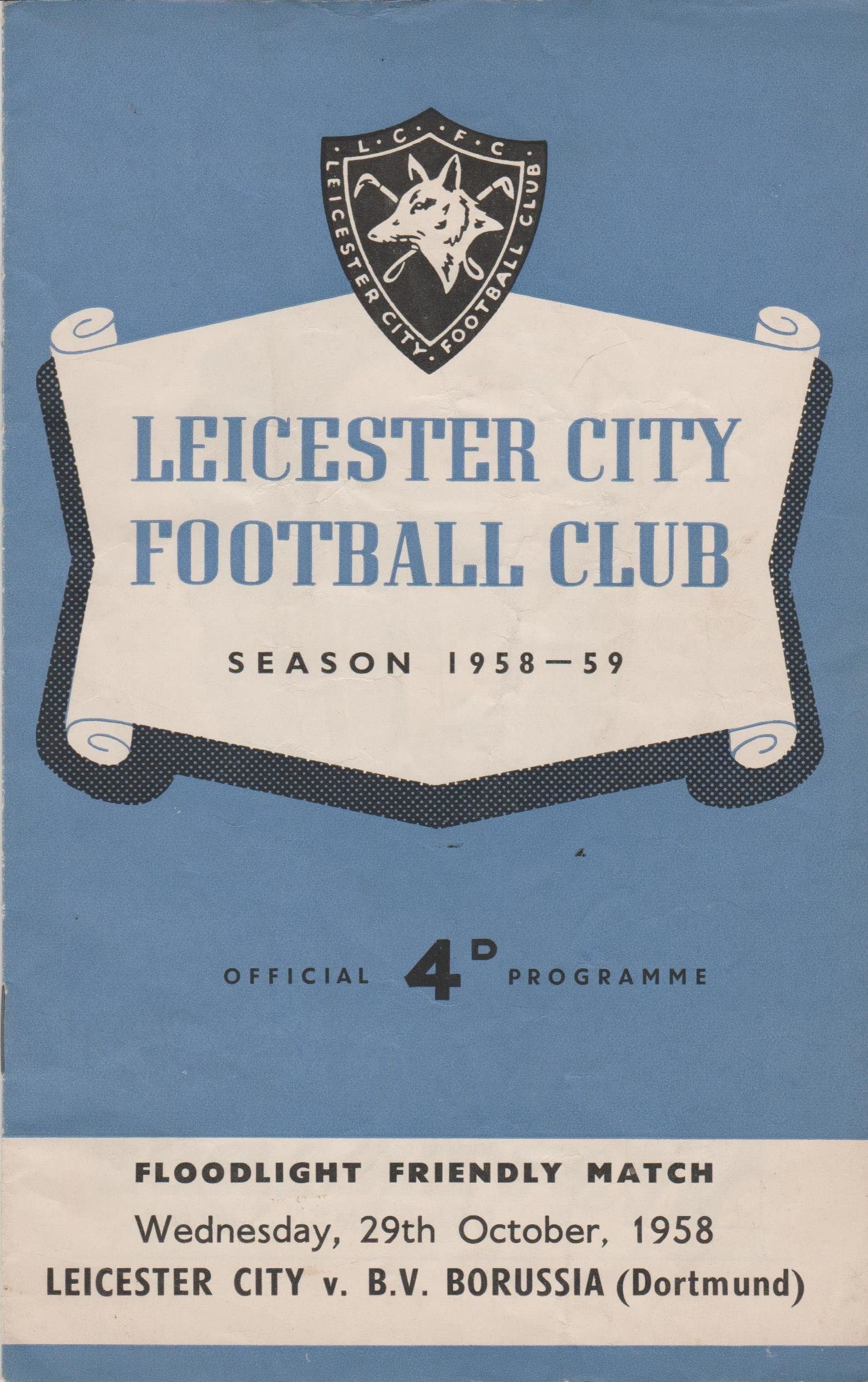 Match: Leicester City v Borussia Dortmund Competition: Friendly Date: 29-Oct-1958 Comments: Rating: 3 Condition: Faint creases on cover, team changes, mark on back Weight in grams: 60