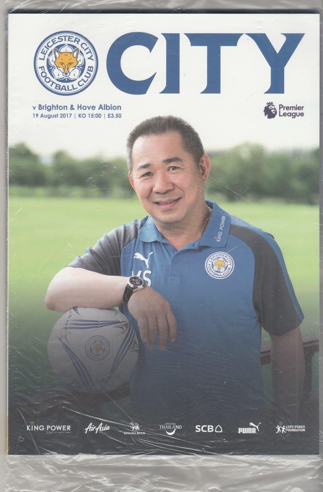 Match: Leicester City v Brighton and Hove Albion Competition: Premier League Date: 19-Aug-2017 Comments: Polybagged issue Rating: 4 Condition: Very good Weight in grams: 200