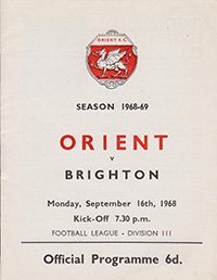 Match: Leyton Orient v Brighton and Hove Albion Competition: League Division 3 Date: 16-09-1968 Comments: Postponed issue Rating: 4 Condition: Very good Weight in grams: 40