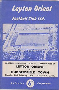 Match: Leyton Orient v Huddersfield Town Competition: League Division 2 Date: 24-02-1964 Comments: Rating: 4 Condition: Faint fold, slight discolouring on corner of cover Weight in grams: 40