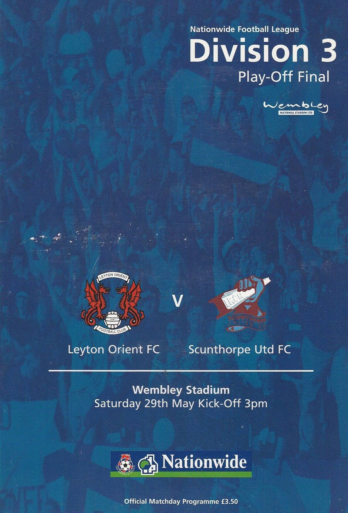 Match: Leyton Orient v Scunthorpe United Competition: League Division 3 Play off Final Date: 29-May-1999 Comments: Rating: 3 Condition: Slight blemish on cover Weight in grams: 300