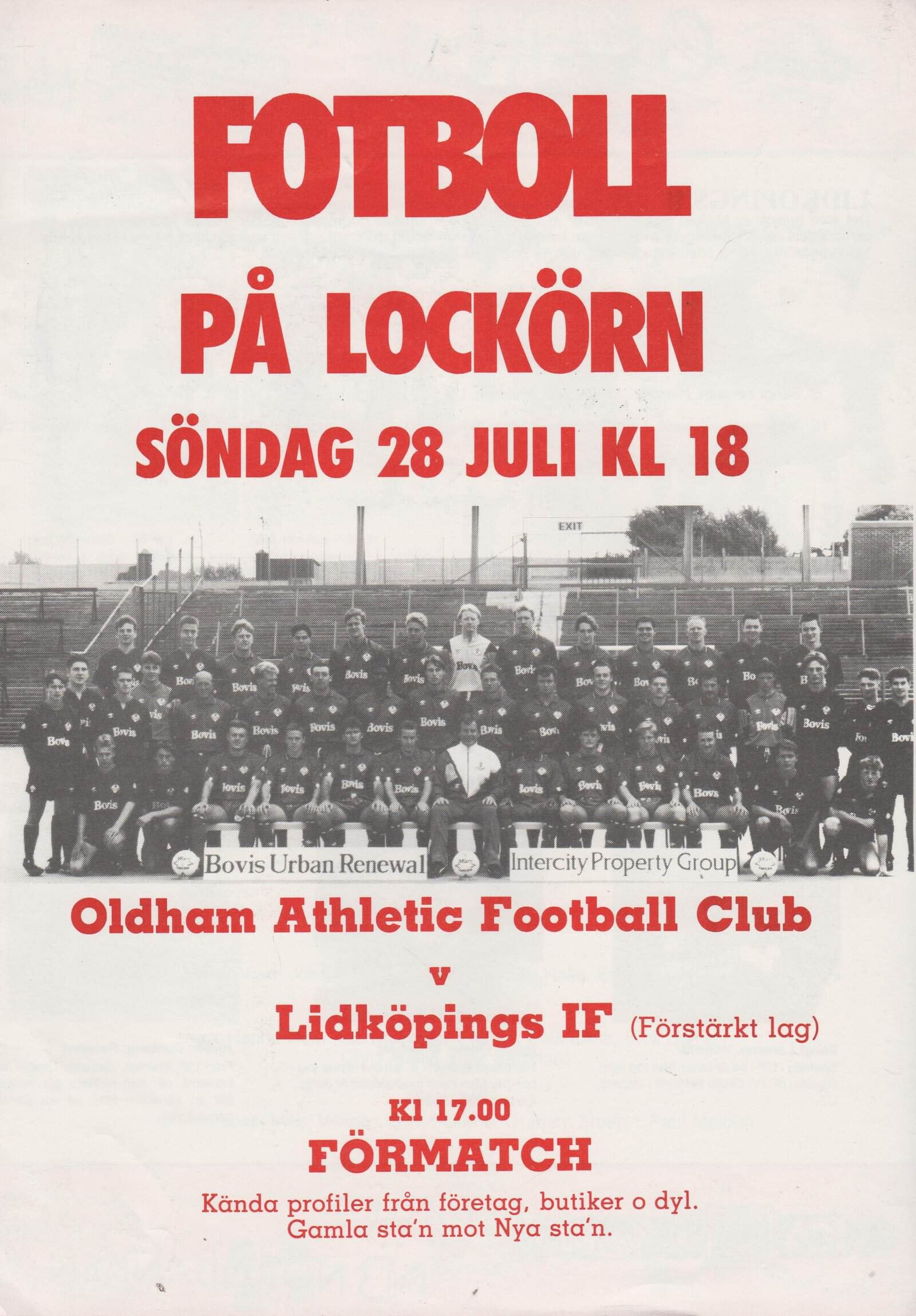 Match: Lidköpings v Oldham Athletic Competition: Friendly Date: 28-Jul-1991 Comments: 4 page issue Rating: 4 Condition: Very good Weight in grams: 40