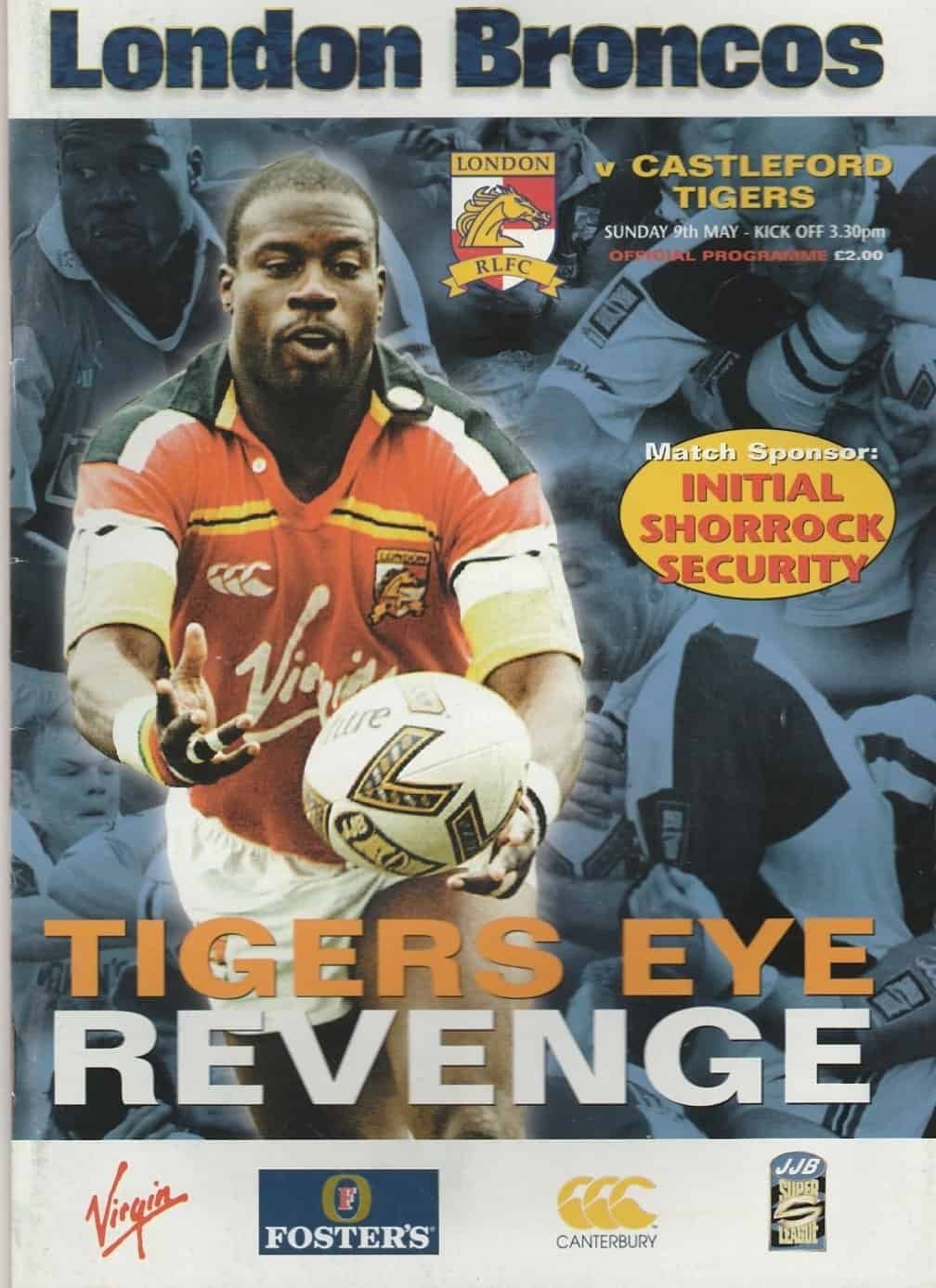 Match: London Broncos v Castleford Tigers Competition: Super League Date: 09-May-1999 Comments: Rating: 4 Condition: Very good Weight in grams: 100
