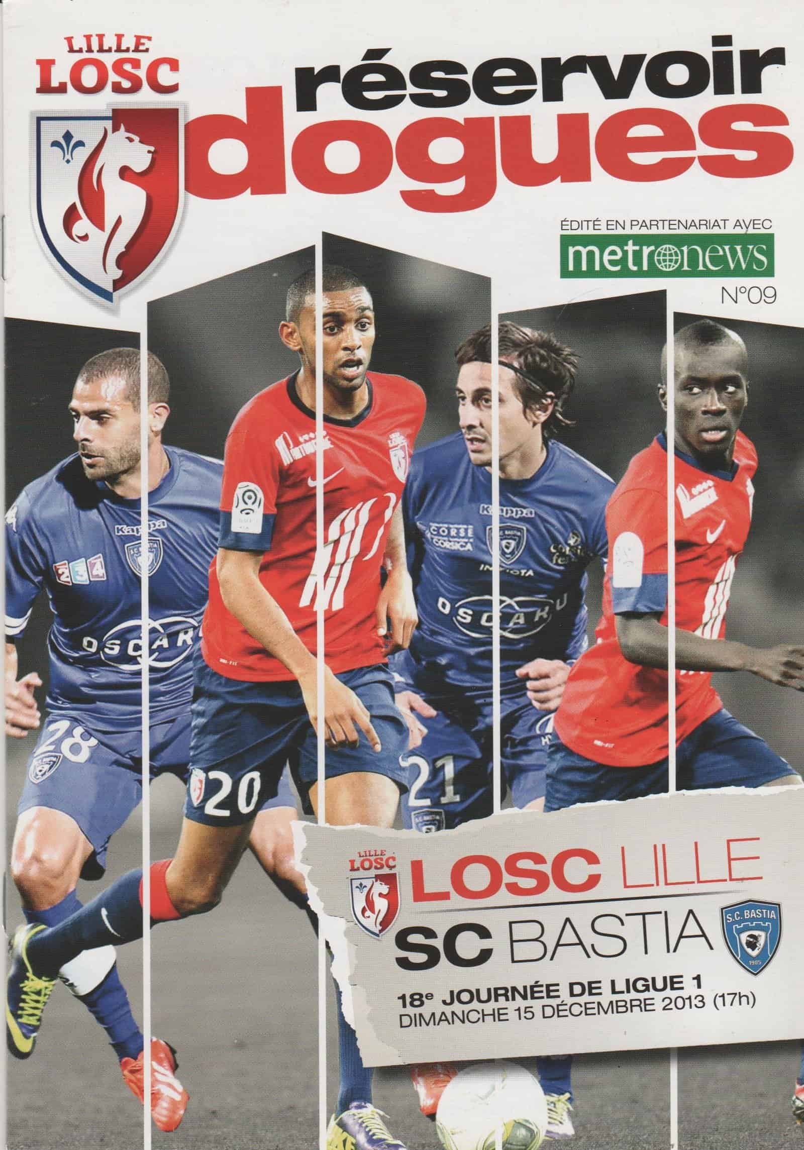 Match: LOSC Lille v SC Bastia Competition: French Ligue 1 Date: 15-Dec-2013 Comments: Rating: 4 Condition: Faint corner crease on back page Weight in grams: 60