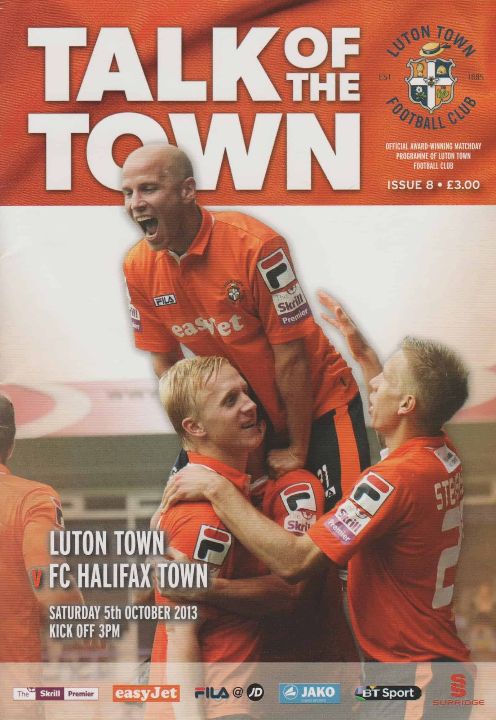Match: Luton Town v FC Halifax Town Competition: Skrill Premier Date: 05-Oct-2013 Comments: Rating: 4 Condition: Very good Weight in grams: 200