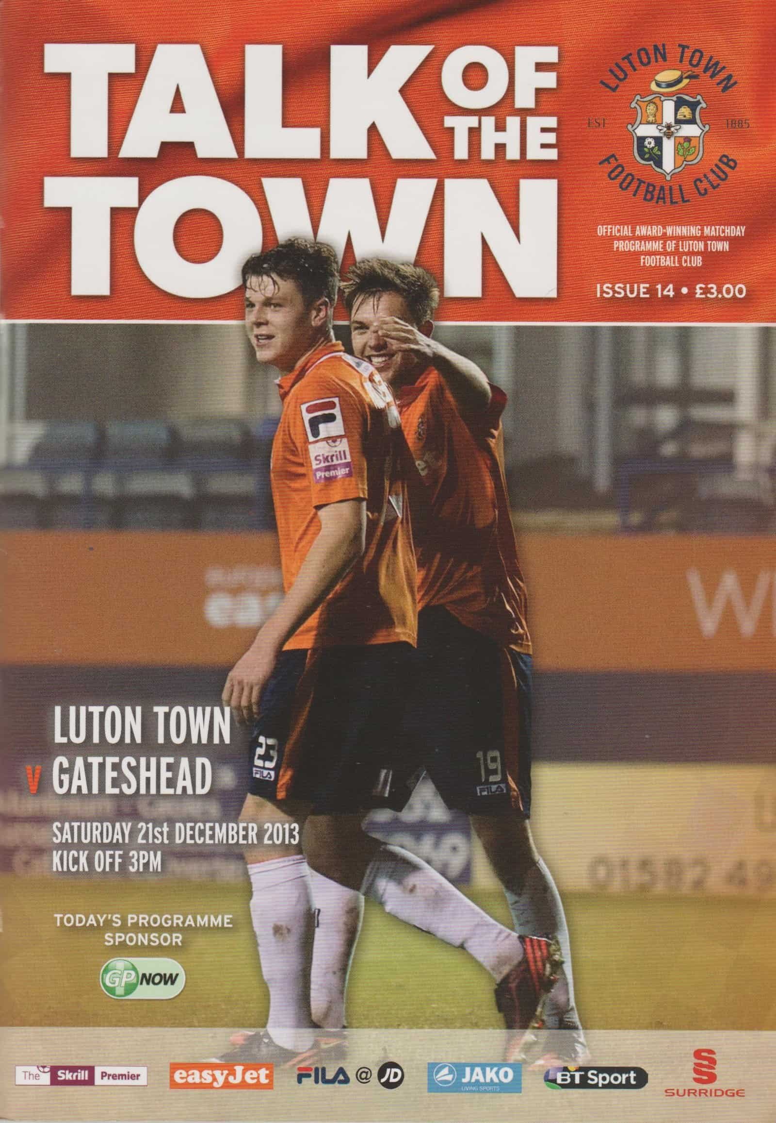 Match: Luton Town v Gateshead Competition: Skrill Premier Date: 21-Dec-2013 Comments: Rating: 5 Condition: Excellent Weight in grams: 200