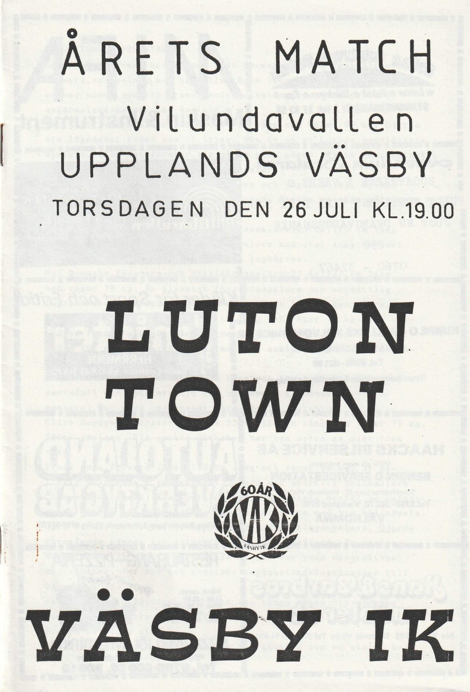Match: Luton Town v Väsby IK Competition: Friendly Date: 26-Jul-1984 Comments: Rating: 4 Condition: Very good Weight in grams: 60