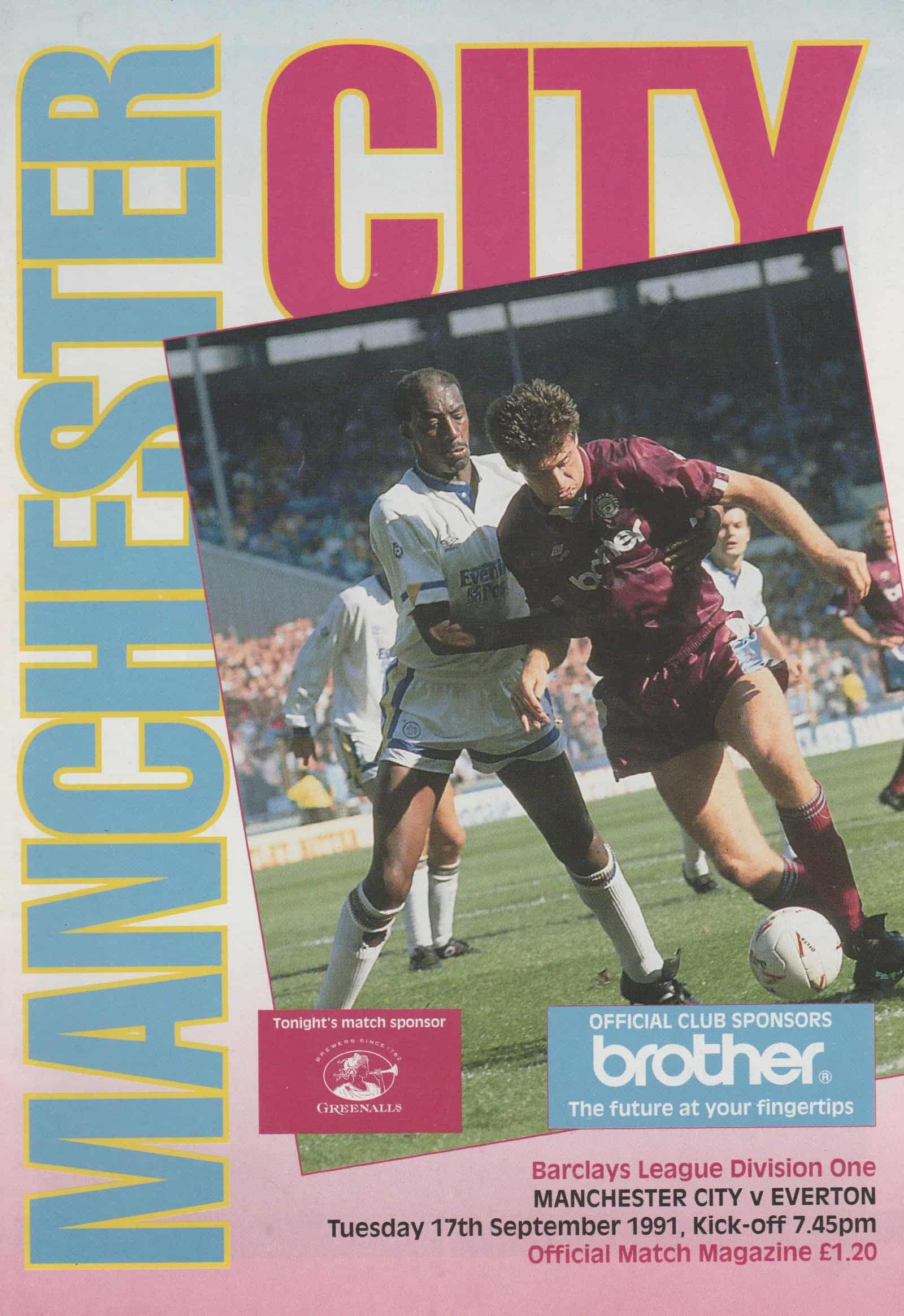Match: Manchester City v Everton Competition: League Division 1 Date: 17-Sep-1991 Comments: Rating: 4 Condition: Faint fold Weight in grams: 100