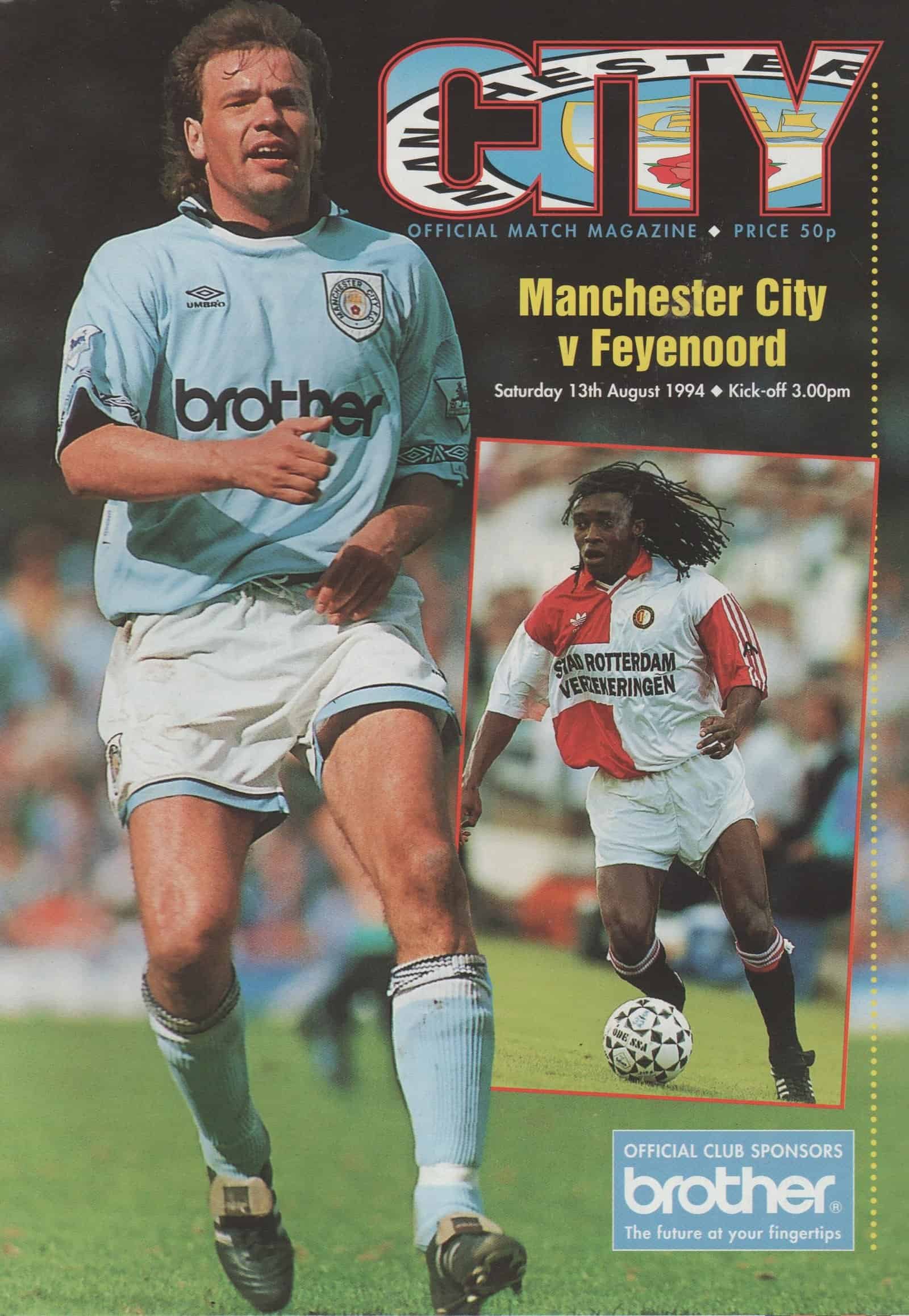 Match: Manchester City v Feyenoord Competition: Friendly Date: 13-Aug-1994 Comments: Rating: 4 Condition: Very Good Weight in grams: 40