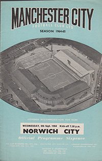 Match: Manchester City v Norwich City Competition: League Division 2 Date: 09-09-1964 Comments: Rating: 3 Condition: Team changes, press cutting cellotaped inside, writing on back page Weight in grams: 60