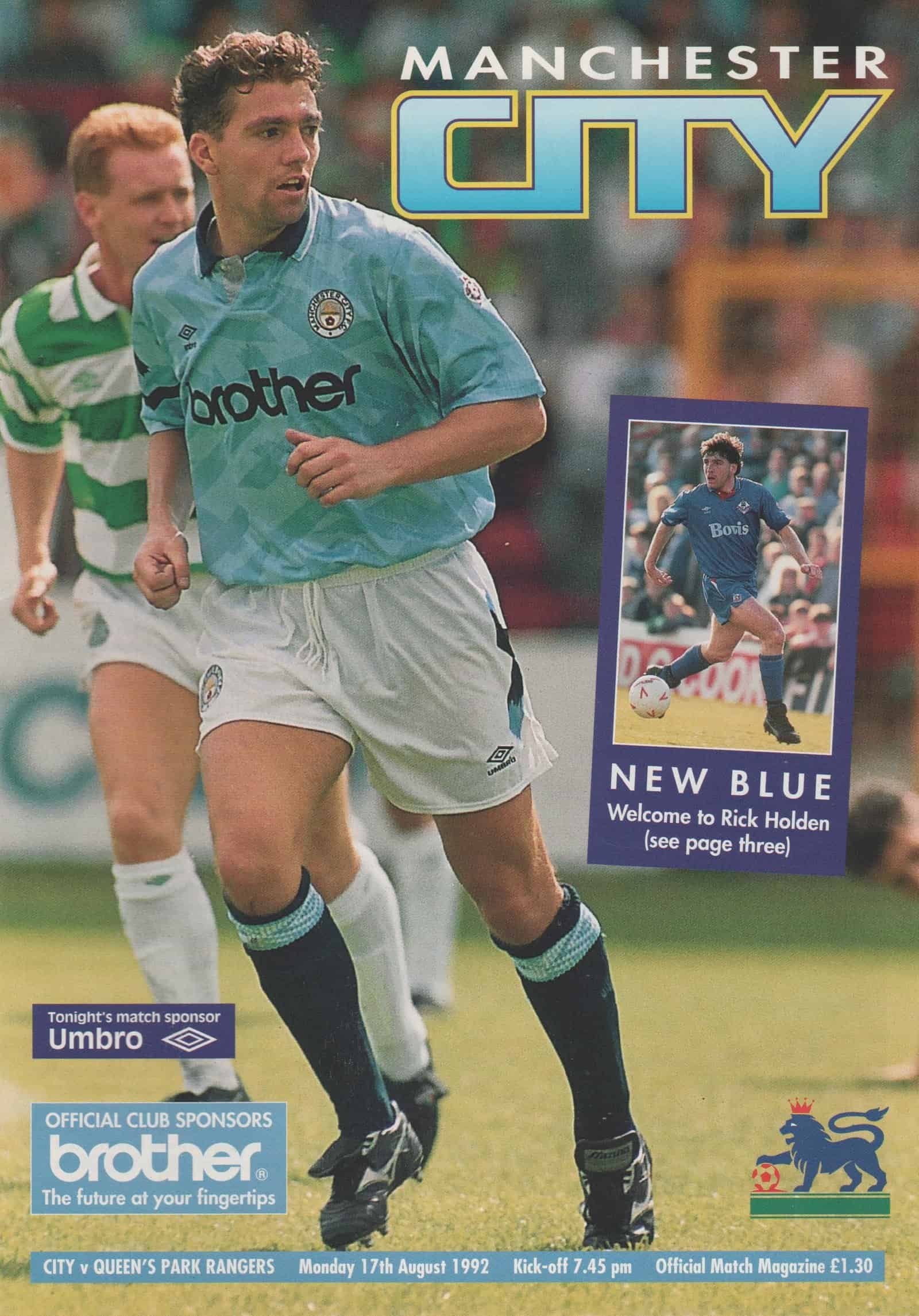 Match: Manchester City v Queens Park Rangers Competition: League Division 1 Date: 17-Aug-1992 Comments: Rating: 4 Condition: Very good Weight in grams: 120