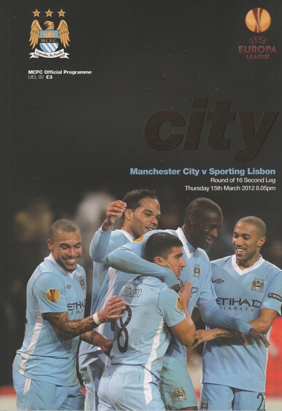 Match: Manchester City v Sporting Lisbon Competition: Champions League Round of 16 2nd leg Date: 15-Mar-2012 Comments: Rating: 4 Condition: Very good Weight in grams: 300