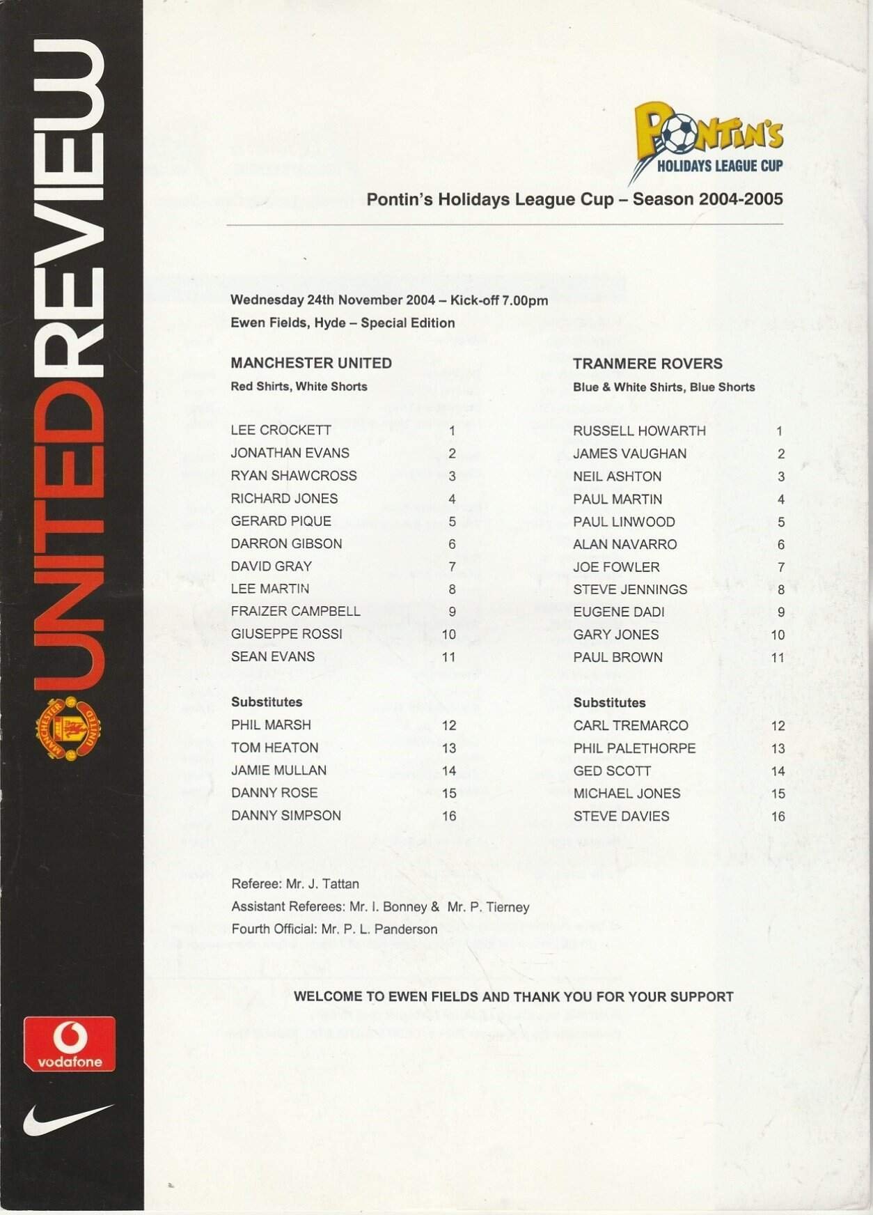 Match: Manchester United Reserves v Tranmere Rovers Reserves Competition: Pontins Holiday League Cup Date: 24-Nov-2004 Comments: Single sheet Rating: 3 Condition: Folds Weight in grams: 20