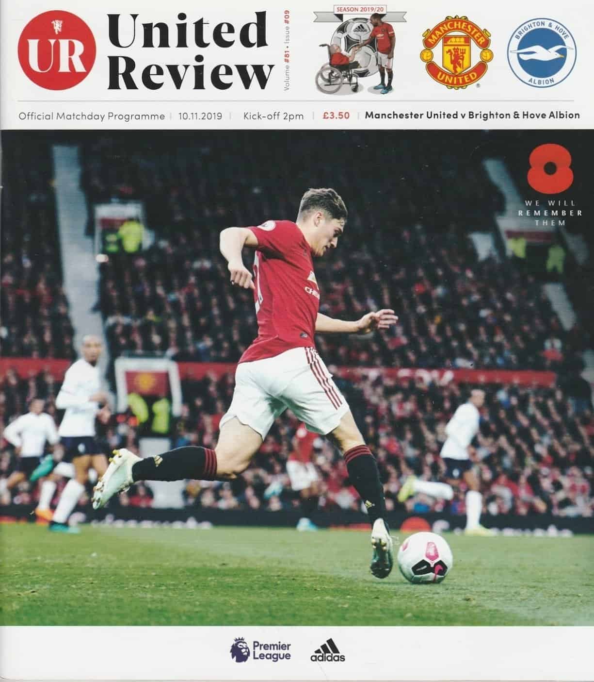 Match: Manchester United v Brighton & Hove Albion Competition: Premier League Date: 10-Nov-2019 Comments: Rating: 4 Condition: Very good Weight in grams: 300