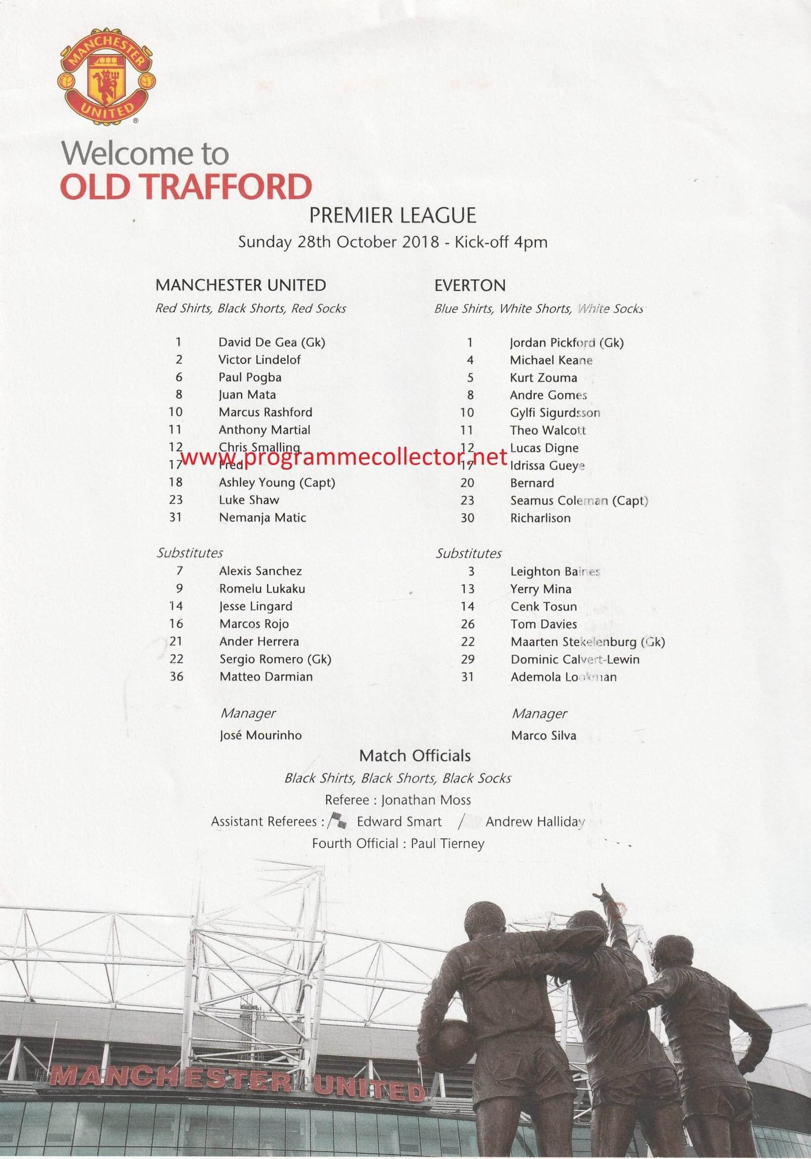 Match: Manchester United v Everton Competition: Premier League Date: 28-Oct-2018 Comments: Rating: 3 Condition: Light folds Weight in grams: 20