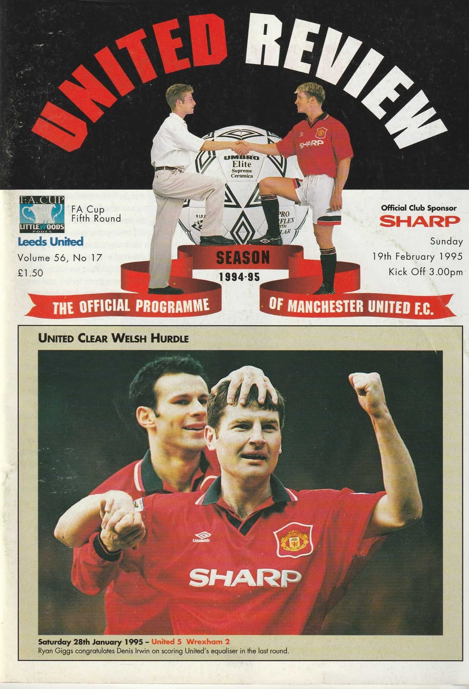 Match: Manchester United v Leeds United Competition: FA Cup 5th Round Date: 19-Feb-1995 Comments: Rating: 3 Condition: Slight marks on cover Weight in grams: 160