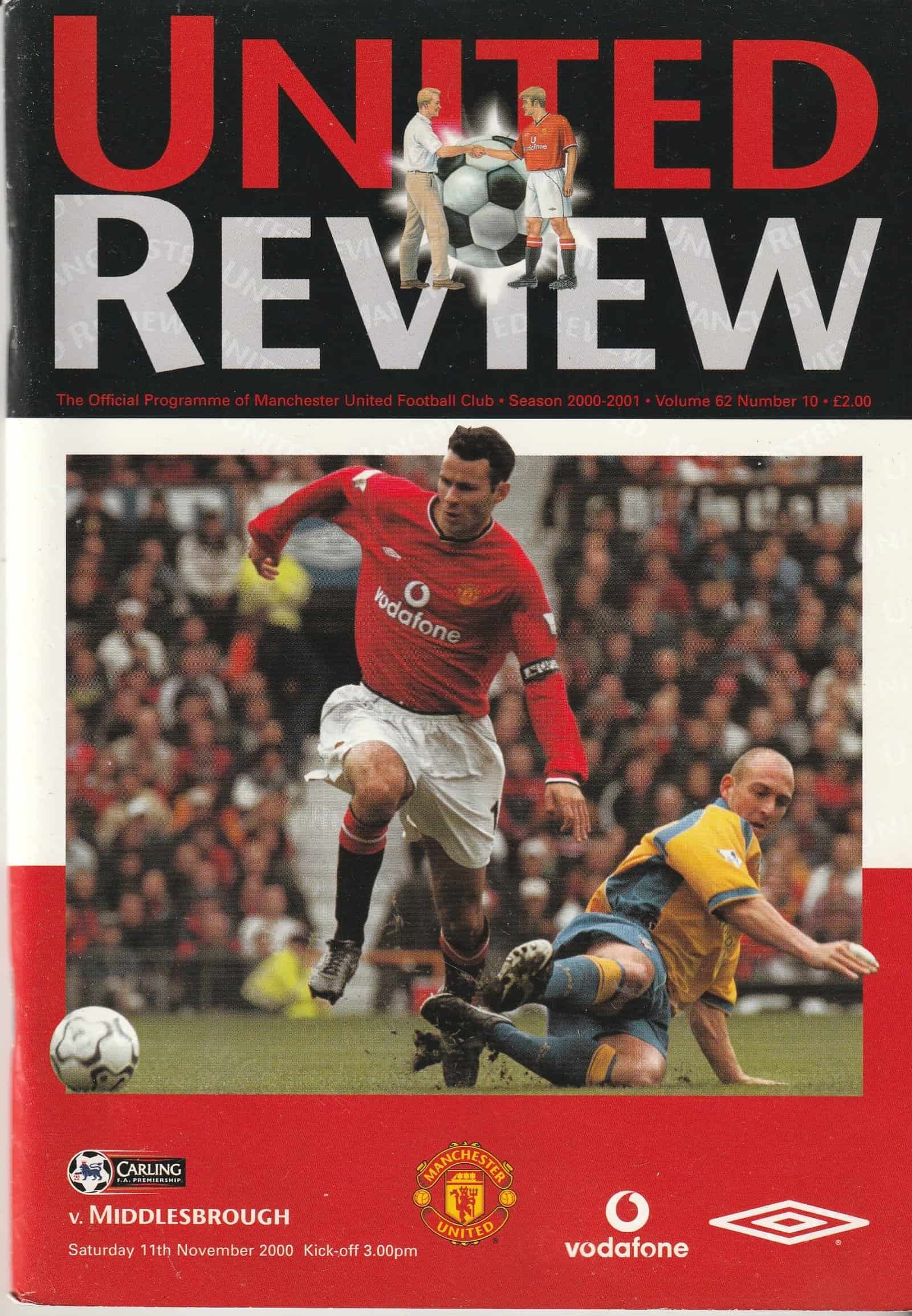 Match: Manchester United v Middlesbrough Competition: Carling Premiership Date: 11-Nov-2000 Comments: Rating: 4 Condition: Very good Weight in grams: 260