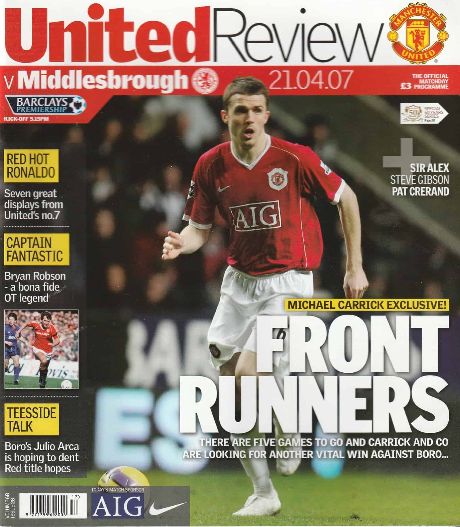 Match: Manchester United v Middlesbrough Competition: Barclays Premier League Date: 21-Apr-2007 Comments: Rating: 4 Condition: Very good Weight in grams: 300
