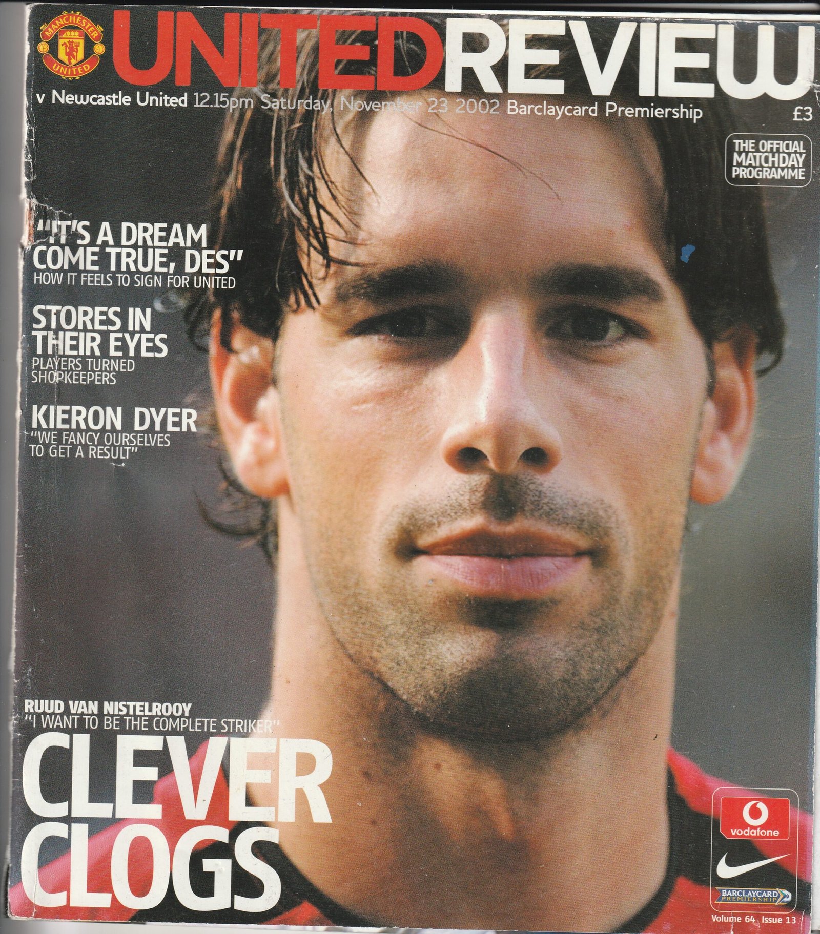 Match: Manchester United v Newcastle United Competition: Premier League Date: 23-Nov-2002 Comments: Rating: 3 Condition: Tear and split on spine, handling wear Weight in grams: 300