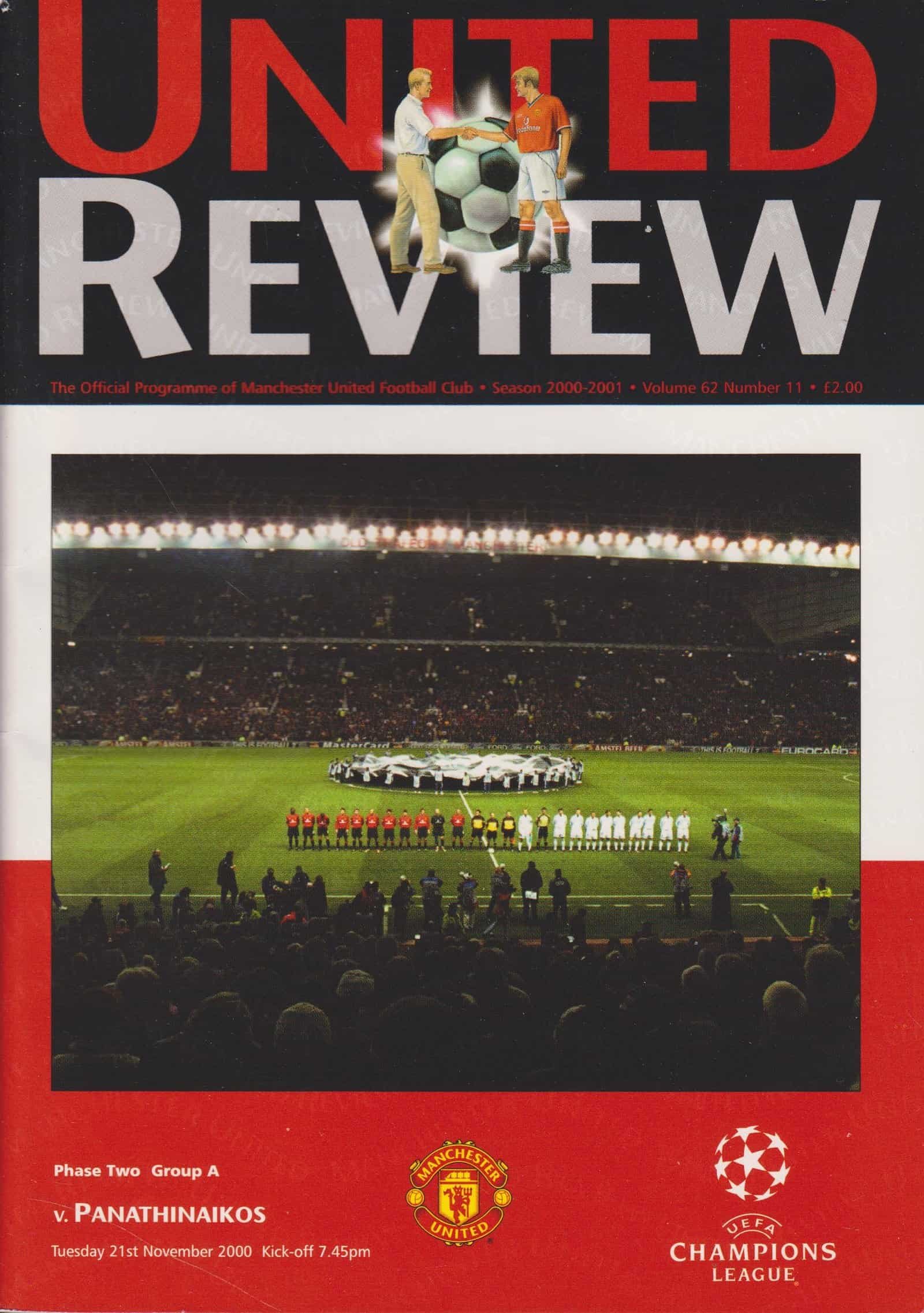 Match: Manchester United v Panathinaikos Competition: Champions League Phase 2 Group A Date: 21-Nov-2000 Comments: Rating: 4 Condition: Very good Weight in grams: 160