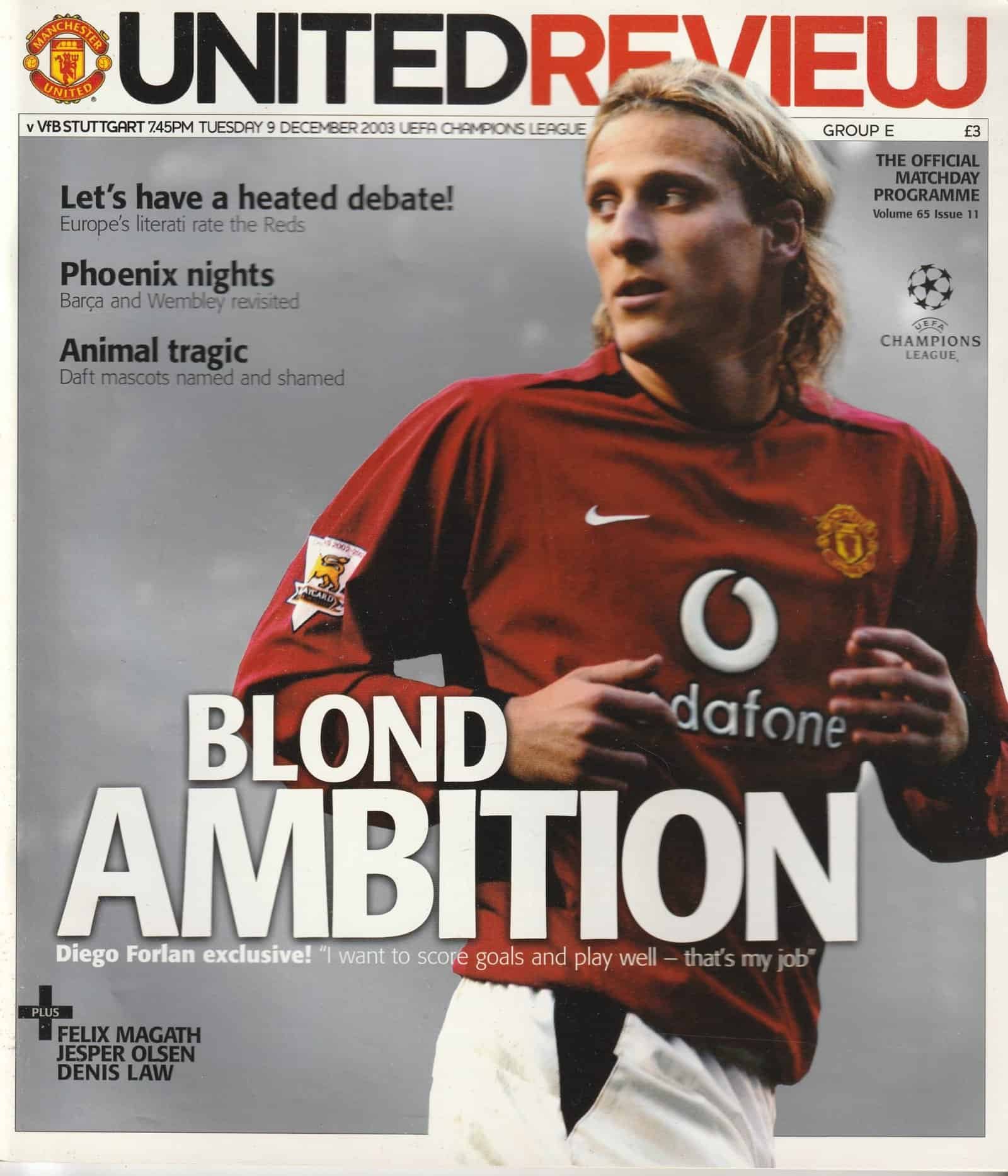 Match: Manchester United v VFB Stuttgart Competition: Champions League Group E Date: 09-Dec-2003 Comments: Rating: 4 Condition: Very good Weight in grams: 300