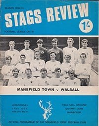 Match: Mansfield Town v Walsall Competition: League Division 3 Date: 14-10-1970 Comments: Rating: 3 Condition: Slight fold, small pen mark on back Weight in grams: 60