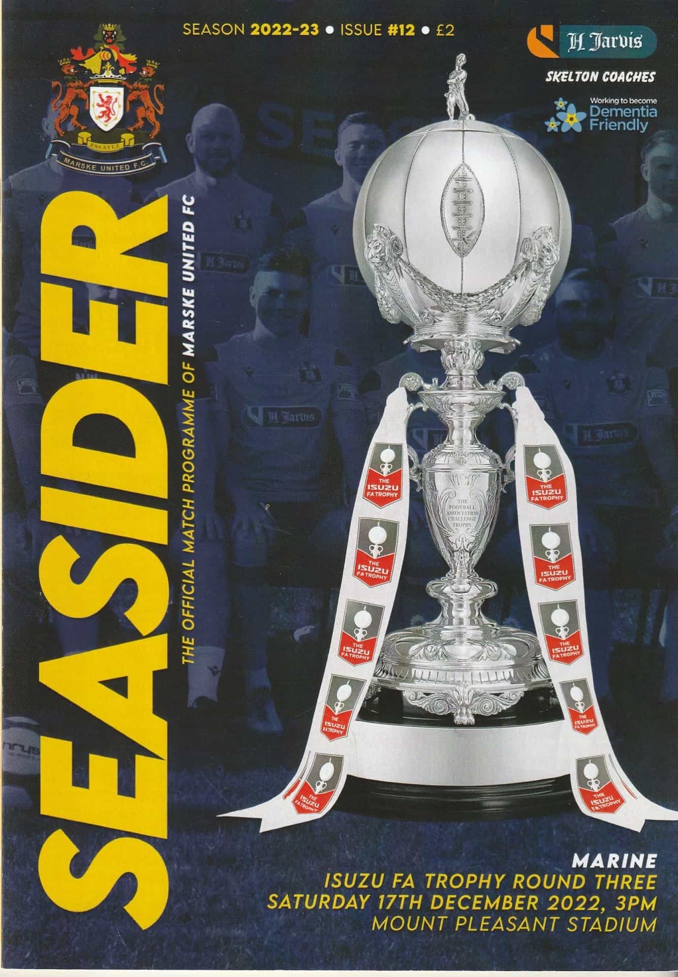 Match: Marske United v Marine Competition: FA Trophy 3rd Round Date: 17-Dec-2022 Comments: Rating: 4 Condition: Very good Weight in grams: 160