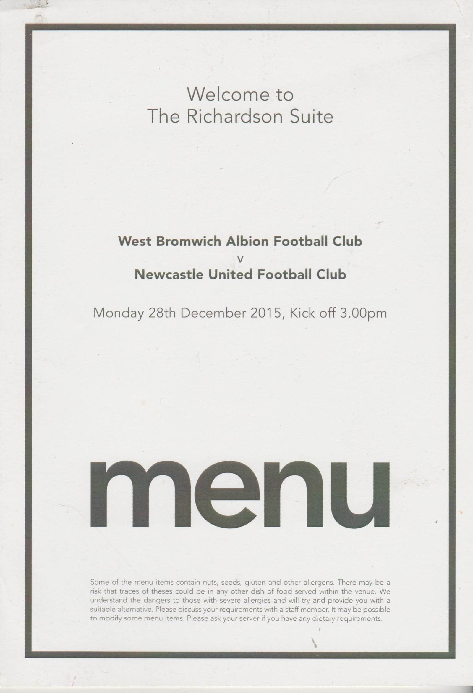 Match: West Bromwich Albion v Newcastle United Competition: Premier League Date: 28-Dec-2015 Comments: Rating: 4 Condition: Very good Weight in grams: 20