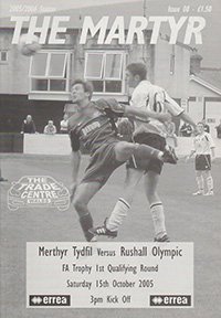 Match: Merthyr Tydfil v Rushall Olympic Competition: FA Trophy 1st Qualifying Round Date: 15-10-2005 Comments: Rating: 4 Condition: Very good Weight in grams: 80
