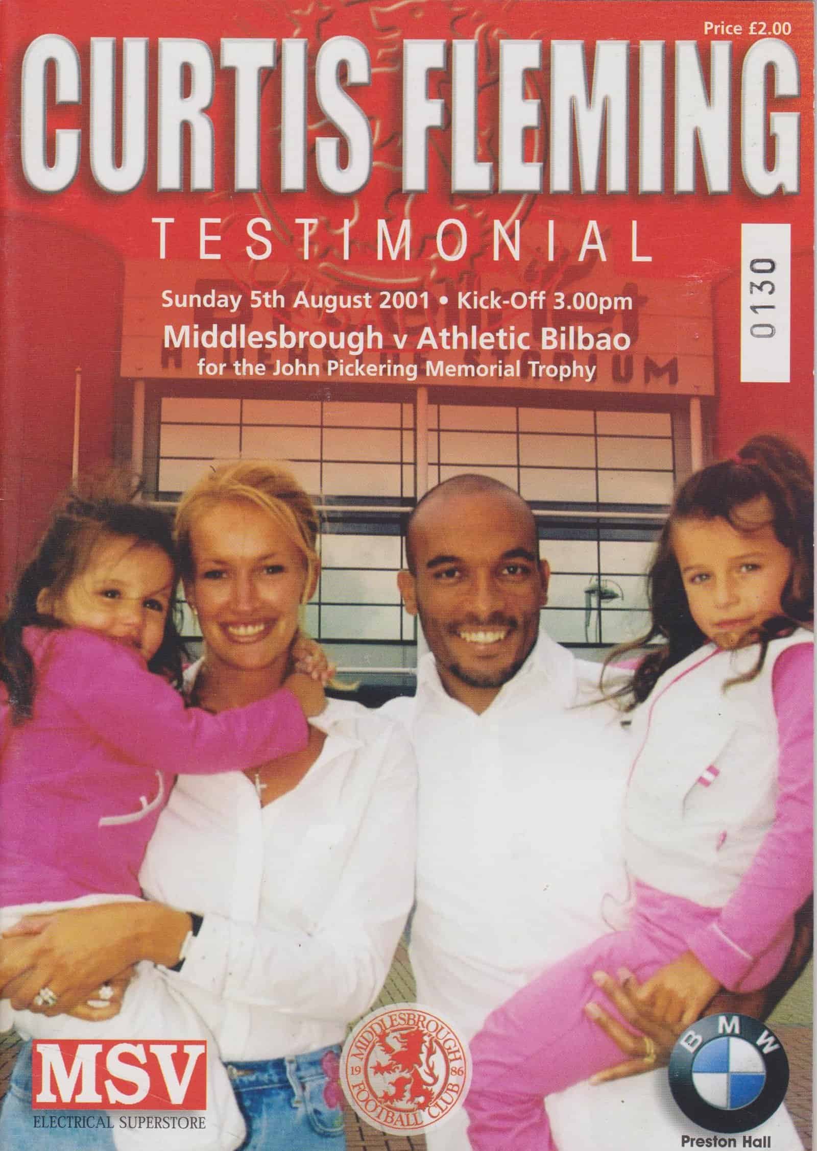 Match: Middlesbrough v Athletic Bilbao Competition: Friendly Date: 05-Aug-2001 Comments: Curtis Fleming Testimonial Match Rating: 5 Condition: Excellent Weight in grams: 100