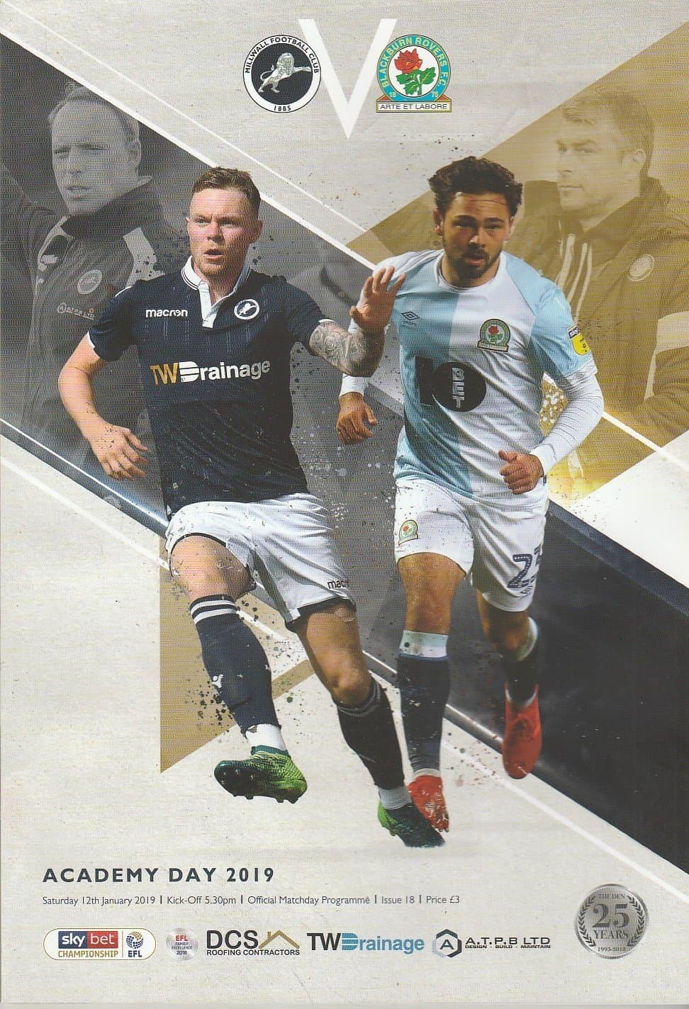 Match: Millwall v Blackburn Rovers Competition: League Championship Date: 12-Jan-2019 Comments: Rating: 4 Condition: Very good Weight in grams: 240