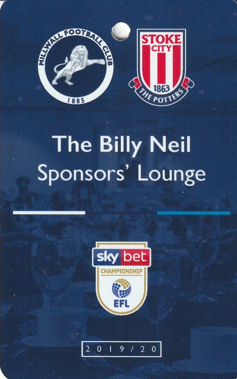 Match: Millwall v Stoke City Competition: League Championship Date: 26-Oct-2019 Comments: Rating: 4 Condition: Very good Weight in grams: 20