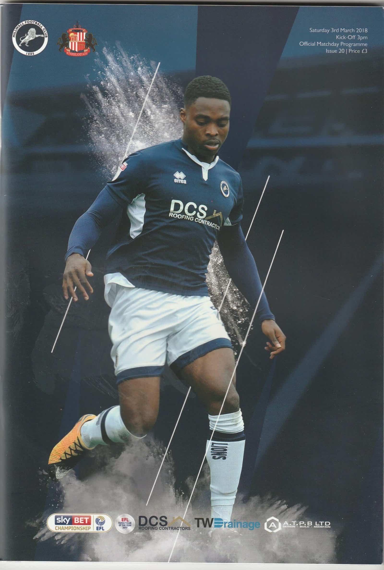 Match: Millwall v Sunderland Competition: League Championship Date: 03-Mar-2018 Comments: Rating: 4 Condition: Very good Weight in grams: 260