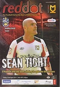 Match: Milton Keynes Dons v Huddersfield Town Competition: League 1 Date: 22-04-2011 Comments: Rating: 5 Condition: Excellent Weight in grams: 200