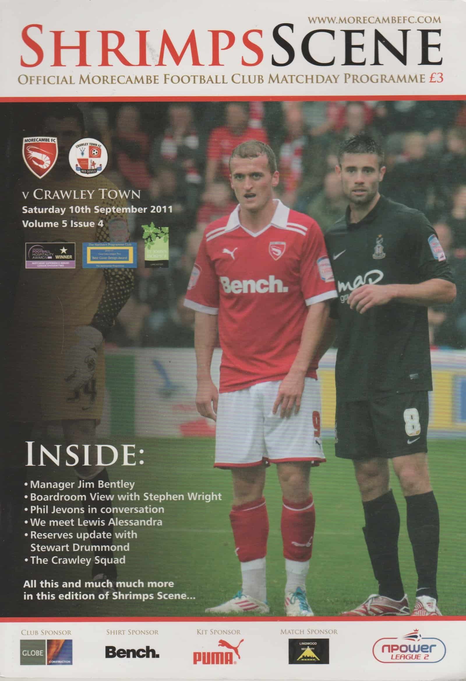 Match: Morecambe v Crawley Town Competition: SkyBet League 2 Date: 10-Sep-2011 Comments: Rating: 4 Condition: Very good Weight in grams: 140