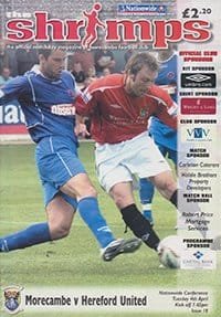 Match: Morecambe v Hereford United Competition: Nationwide Conference Date: 04-04-2006 Comments: Last non league season for Hereford, promoted to league Rating: 5 Condition: Excellent Weight in grams: 120