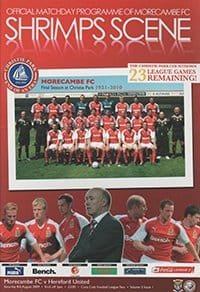 Match: Morecambe v Hereford United Competition: League 2 Date: 08-08-2009 Comments: Last season at Christie Park Rating: 4 Condition: Very good Weight in grams: 200