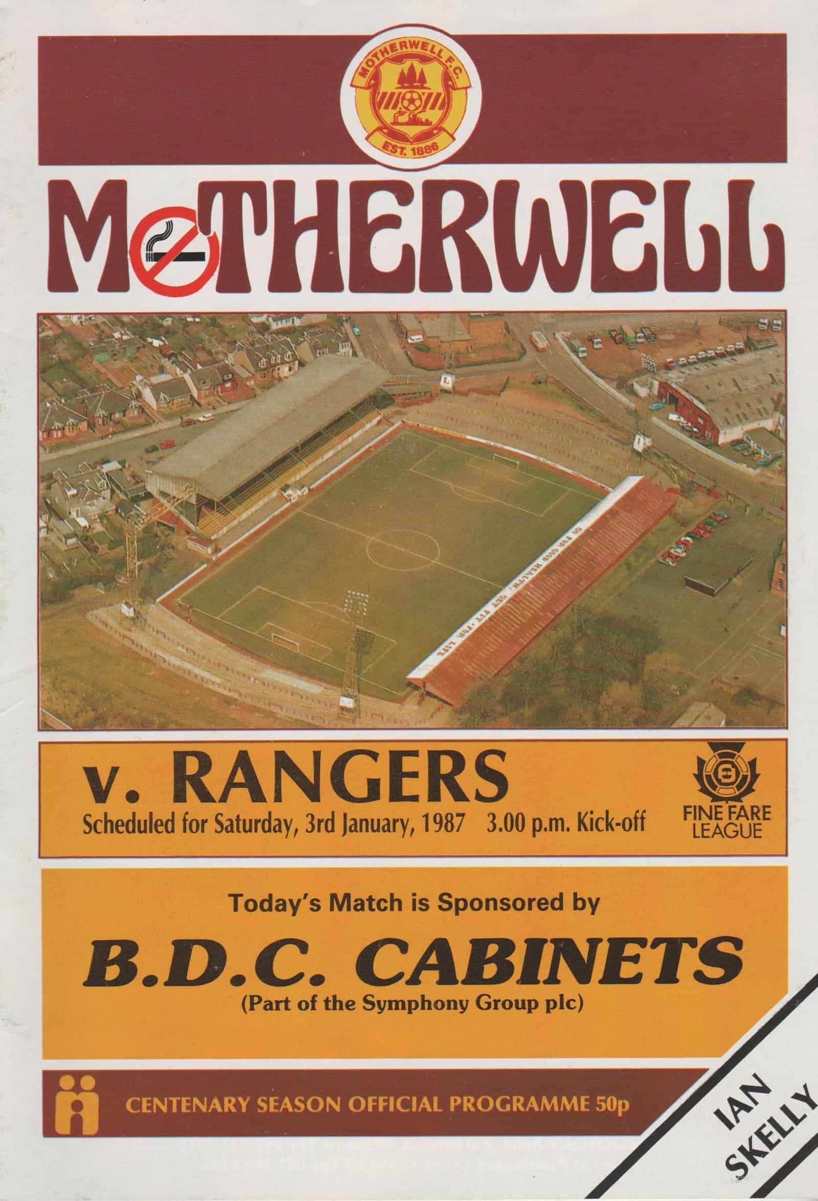Match: Motherwell v Glasgow Rangers Competition: Scottish Premier League Date: 03-Jan-1987 Comments: Rating: 4 Condition: Very good Weight in grams: 80