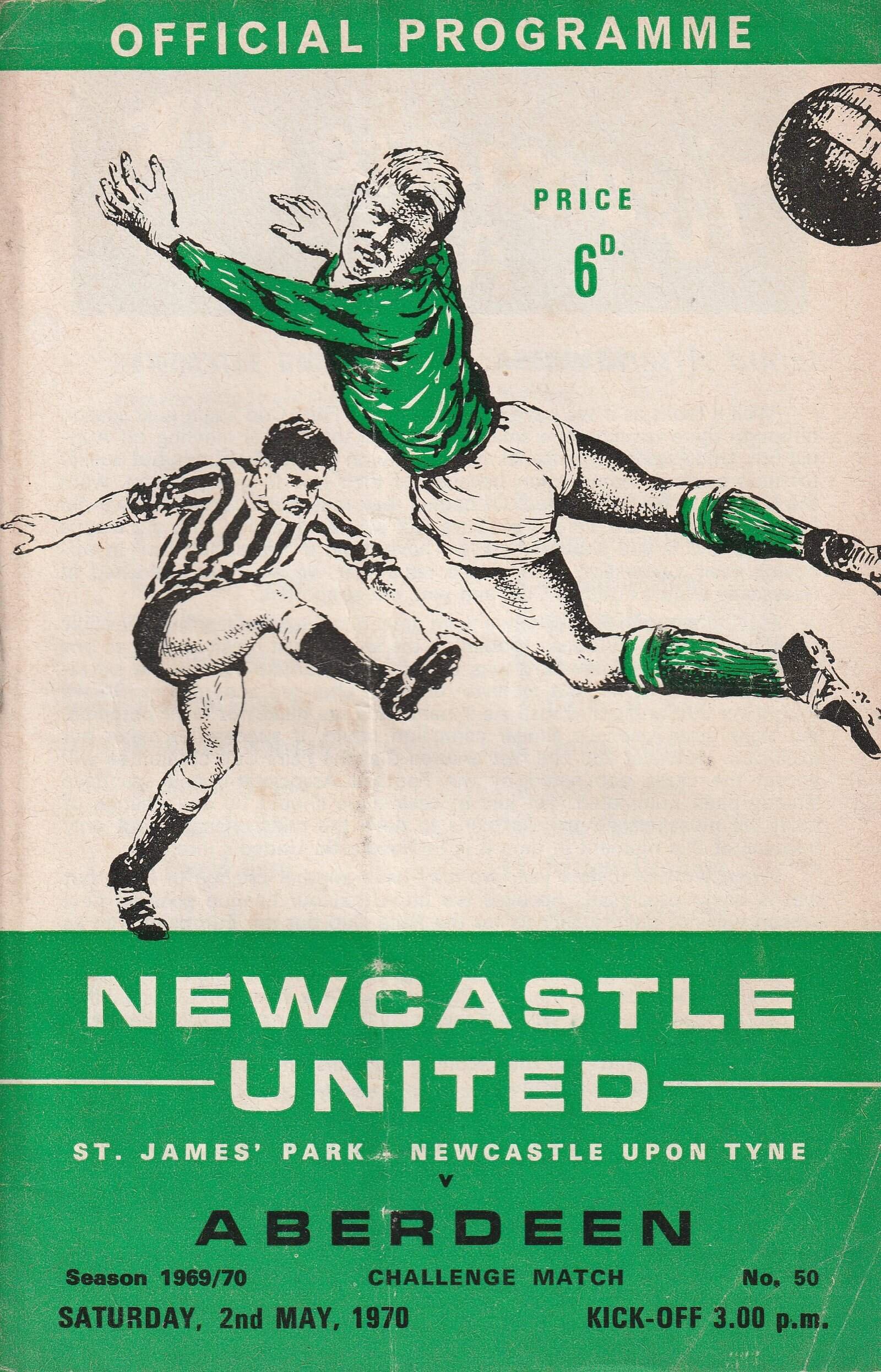 Match: Newcastle United v Aberdeen Competition: Friendly Date: 02-May-1970 Comments: Rating: 3 Condition: Light folds Weight in grams: 80