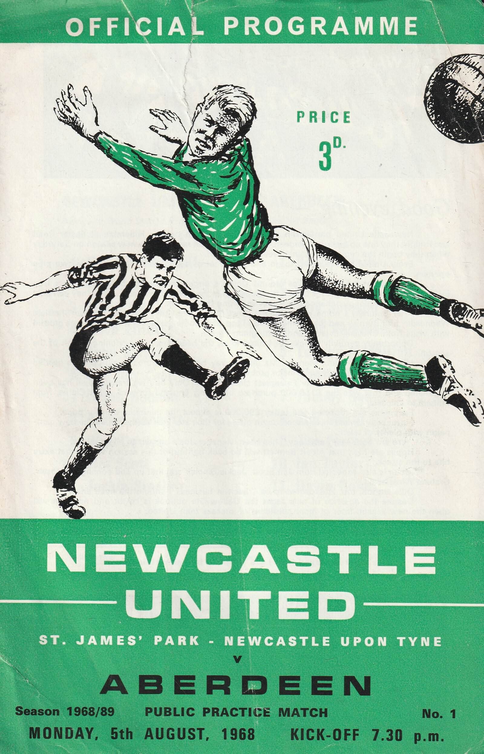 Match: Newcastle United v Aberdeen Competition: Friendly Date: 05-Aug-1968 Comments: 4 page issue Rating: 3 Condition: Tear on cover, slight handling wear Weight in grams: 80
