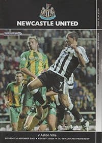 Match: Newcastle United v Aston Villa Competition: Premier League Date: 01-11-2003 Comments: Rating: 4 Condition: Slight print imperfection on cover Weight in grams: 180