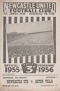 Match: Newcastle United v Aston Villa Competition: League Division 1 Date: 10-03-1956 Comments: Rating: 4 Condition: Light mark on back page Weight in grams: 40