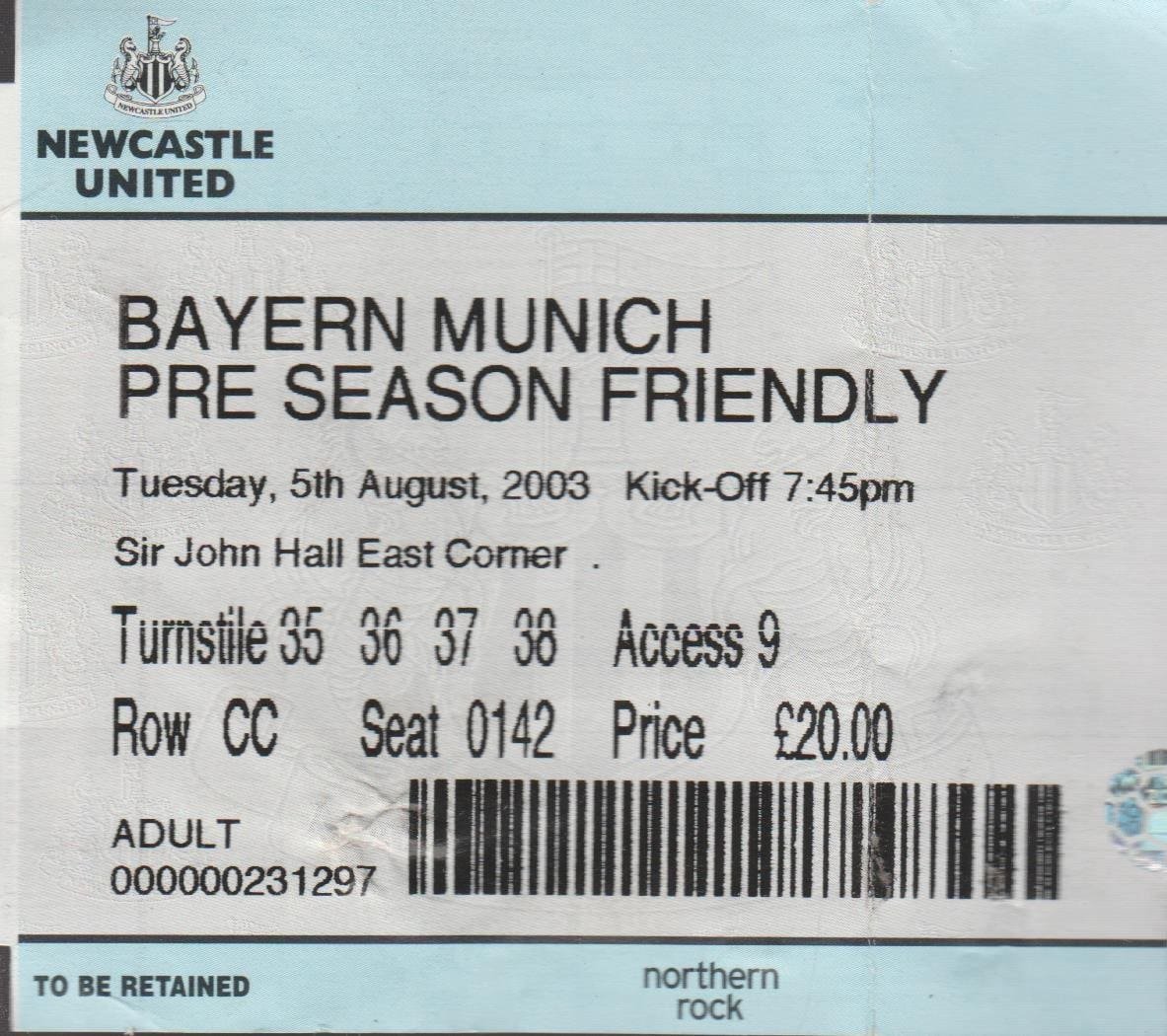 Match: Newcastle United v Bayern Munich Competition: Friendly Date: 05-08-2003 Comments: Rating: 3 Condition: Crease Weight in grams: 20