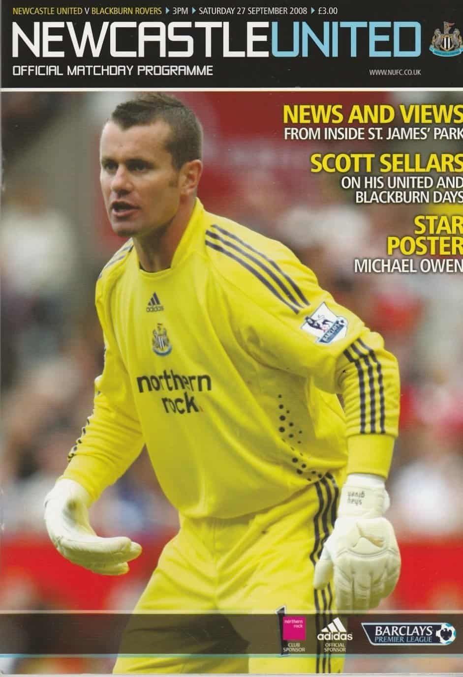 Match: Newcastle United v Blackburn Rovers Competition: Premier League Date: 27-Sep-2008 Comments: Rating: 4 Condition: Very good Weight in grams: 240
