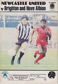 Match: Newcastle United v Brighton and Hove Albion Competition: League Division 2 Date: 12-05-1984 Comments: Rating: 3 Condition: Fold Weight in grams: 60