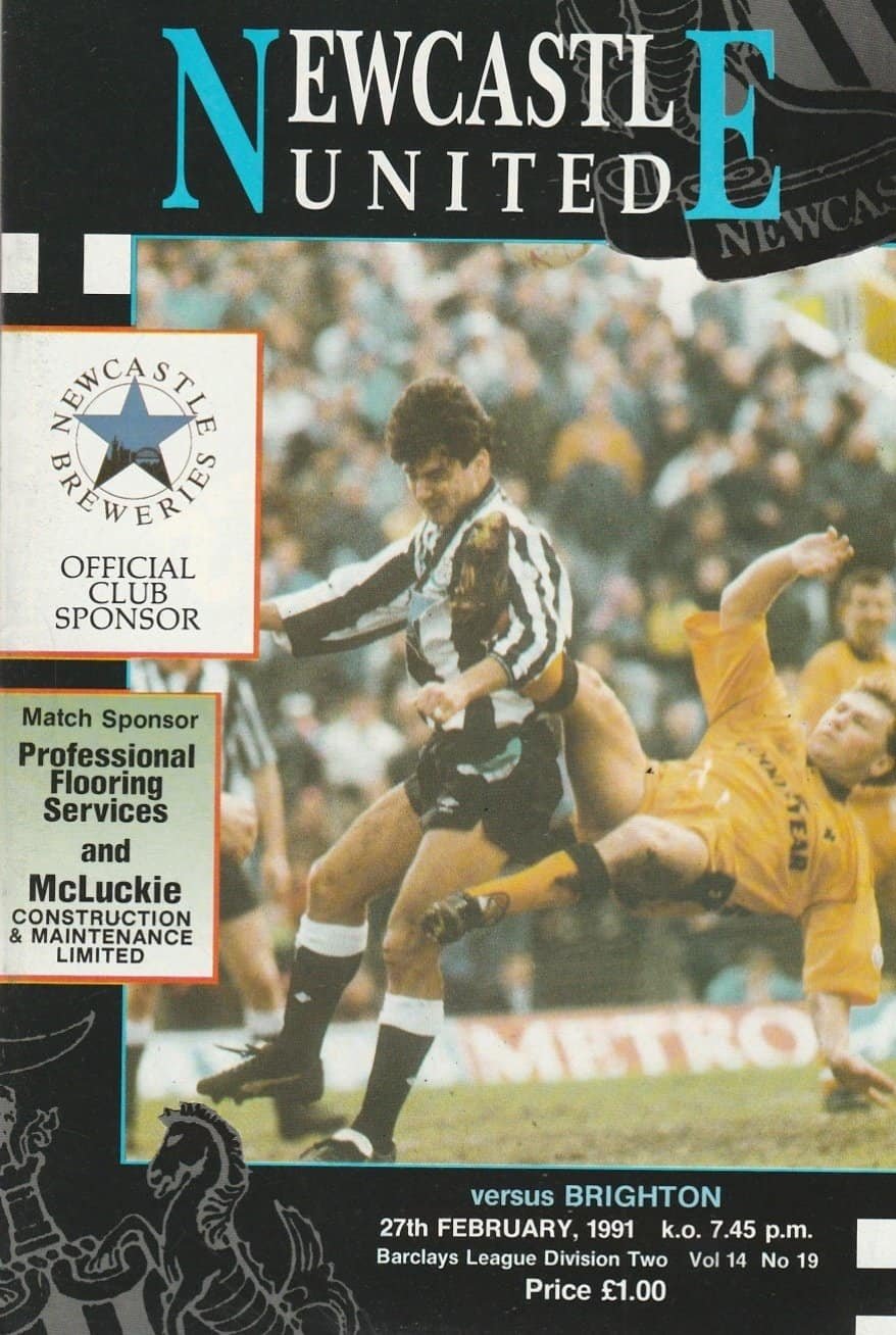Match: Newcastle United v Brighton and Hove Albion Competition: League Division 2 Date: 27-Feb-1991 Comments: Rating: 4 Condition: Very good Weight in grams: 100