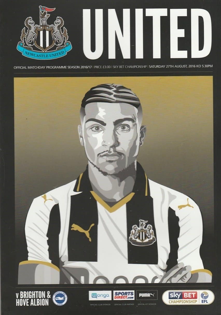 Match: Newcastle United v Brighton & Hove Albion Competition: League Championship Date: 27-Aug-2016 Comments: Rating: 4 Condition: Very good Weight in grams: 260