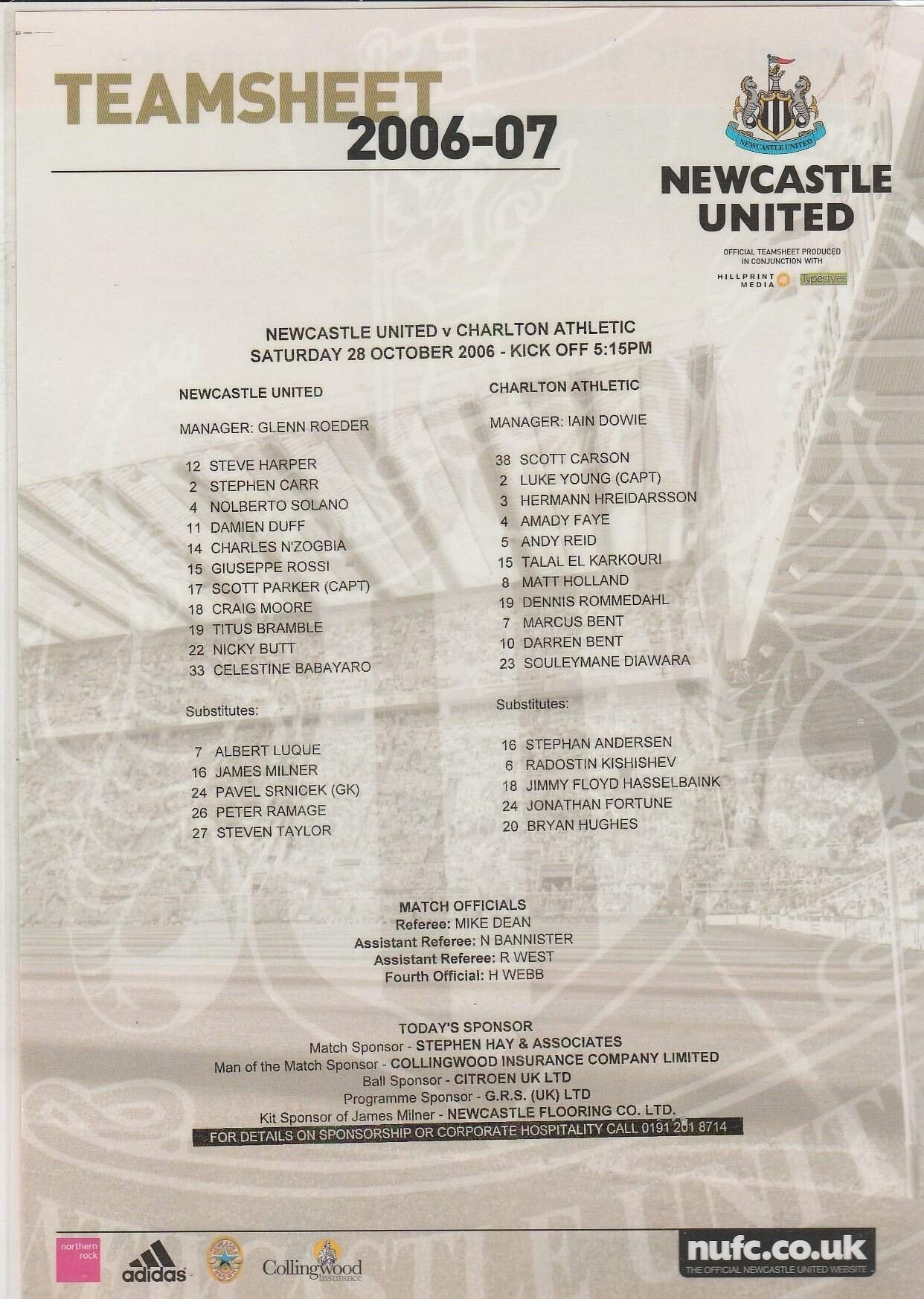 Newcastle United v Charlton Athletic 28-Oct-2006