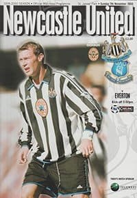 Match: Newcastle United v Everton Competition: Premier League Date: 07-11-1999 Comments: Rating: 4 Condition: Nicks on edge of one staple Weight in grams: 100